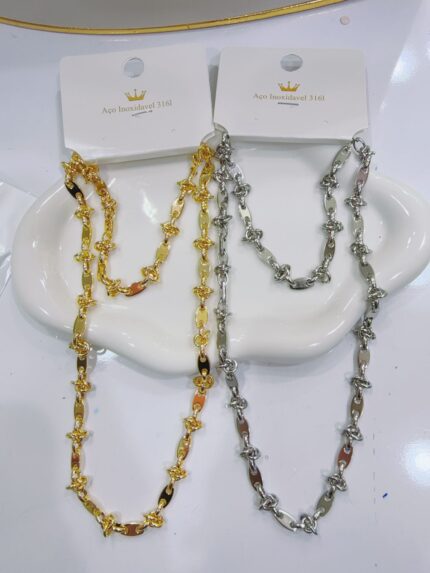 Colar e pulseira de aço