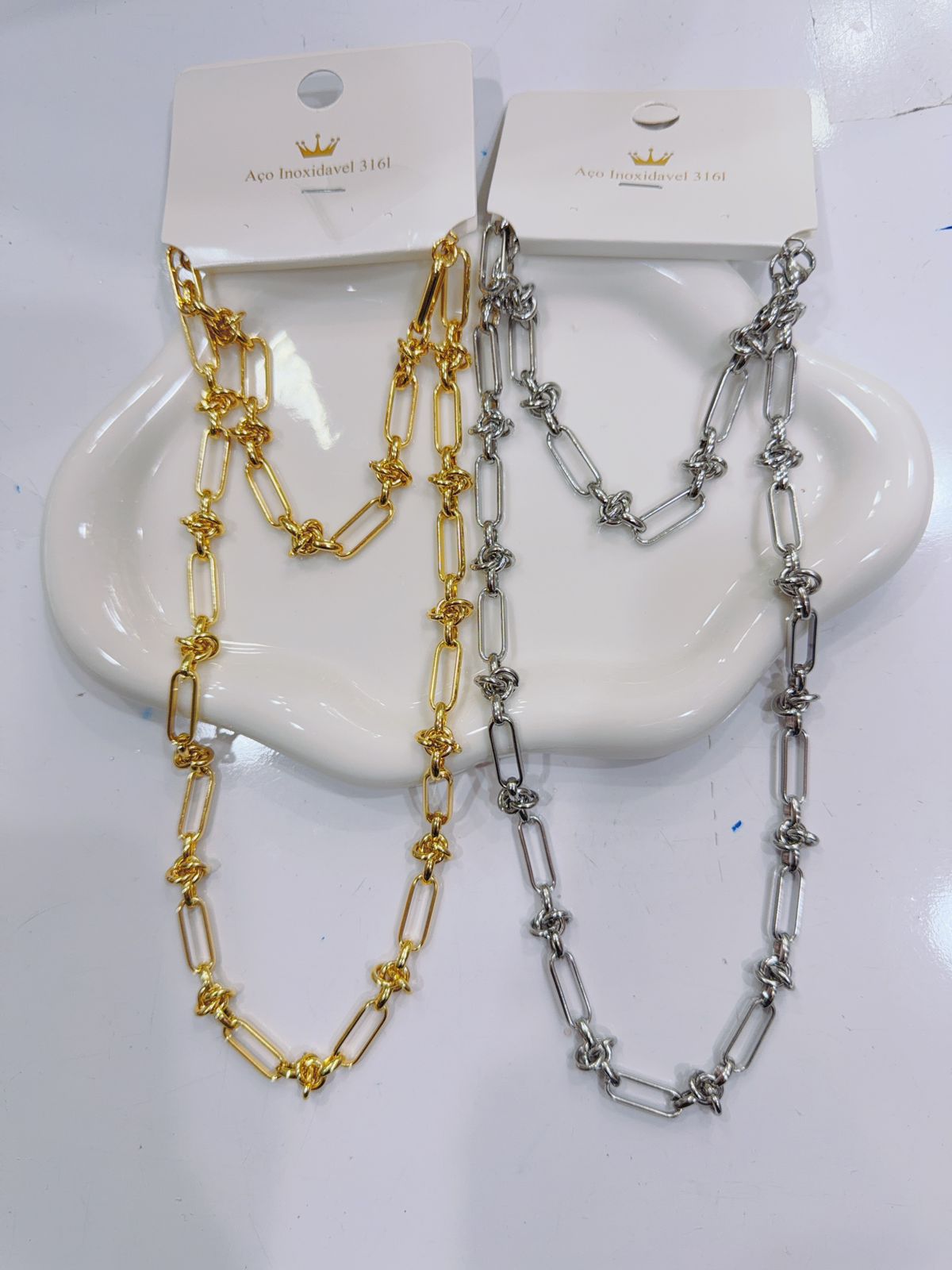 Colar e pulseira de aço