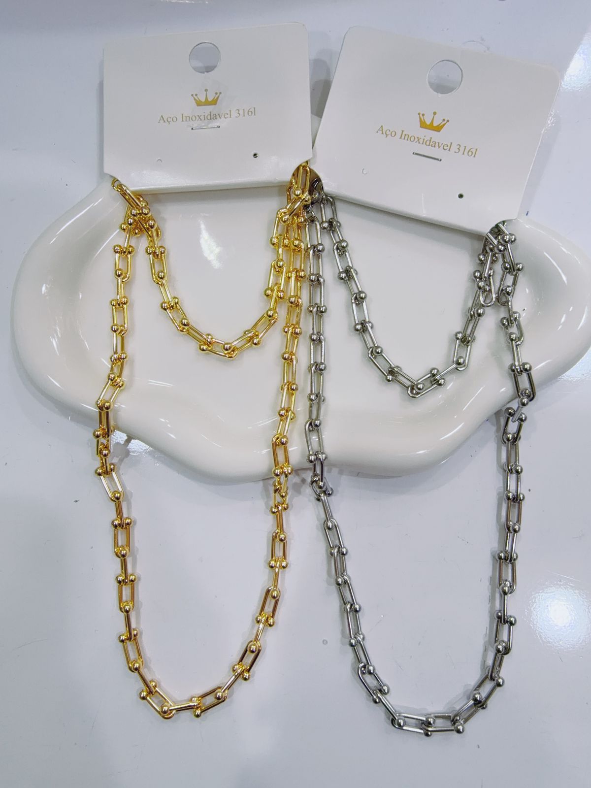 Colar e pulseira de aço